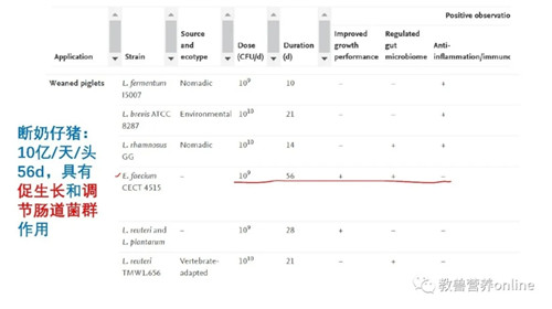 早在2006年后歐盟全面開啟“飼料禁抗”之前,2003年歐盟批了26株益生菌,其中屎腸球菌(Enterococcus faecium)占了10株(見下圖打鉤),是最多的益生菌菌株,涵蓋寵物、豬、禽、奶牛和肉牛。