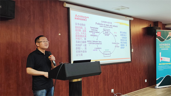 專業(yè)分享環(huán)節(jié),兩位專家?guī)?/span> “技術(shù)干貨”。許衛(wèi)華博士以《乳酸腸球菌在畜禽養(yǎng)殖中的運用》為題,結(jié)合學(xué)術(shù)與實踐,講解該菌的特性、腸道健康作用及應(yīng)用效果,用數(shù)據(jù)案例讓養(yǎng)殖戶直觀了解其在改善消化、增強免疫力等方面的優(yōu)勢。