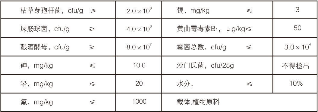 【原料組成】枯草芽孢桿菌、屎腸球菌、釀酒酵母、載體植物原料。
