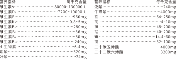 【原料組成】?;撬?、深海魚油、復合維生素、復合微量元素、純化水等。