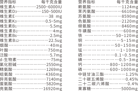 【原料組成 】12種貓必需氨基酸、中鏈甘油三酯、Ω-3(亞麻酸+ EPA+ DHA)、復(fù)合維生素、復(fù)合微量元素、果寡糖、羊奶粉(載體)等。