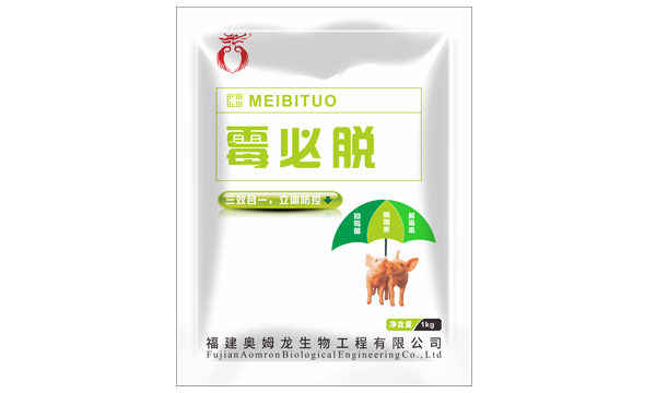 | 玉米、麩皮等輕微霉變 | 外觀肉眼可見極少量(<5%)的霉變顆粒 | 混飼 | 每噸飼料中添加“霉必脫”2000g | 長期添加,改善原料質(zhì)量后方可減量使用或停用 |