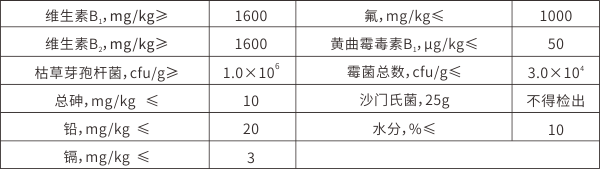 產(chǎn)品名稱:混合型飼料添加劑 硝酸硫胺(維生素B1)+核黃素(維生素B2)+枯草芽孢桿菌