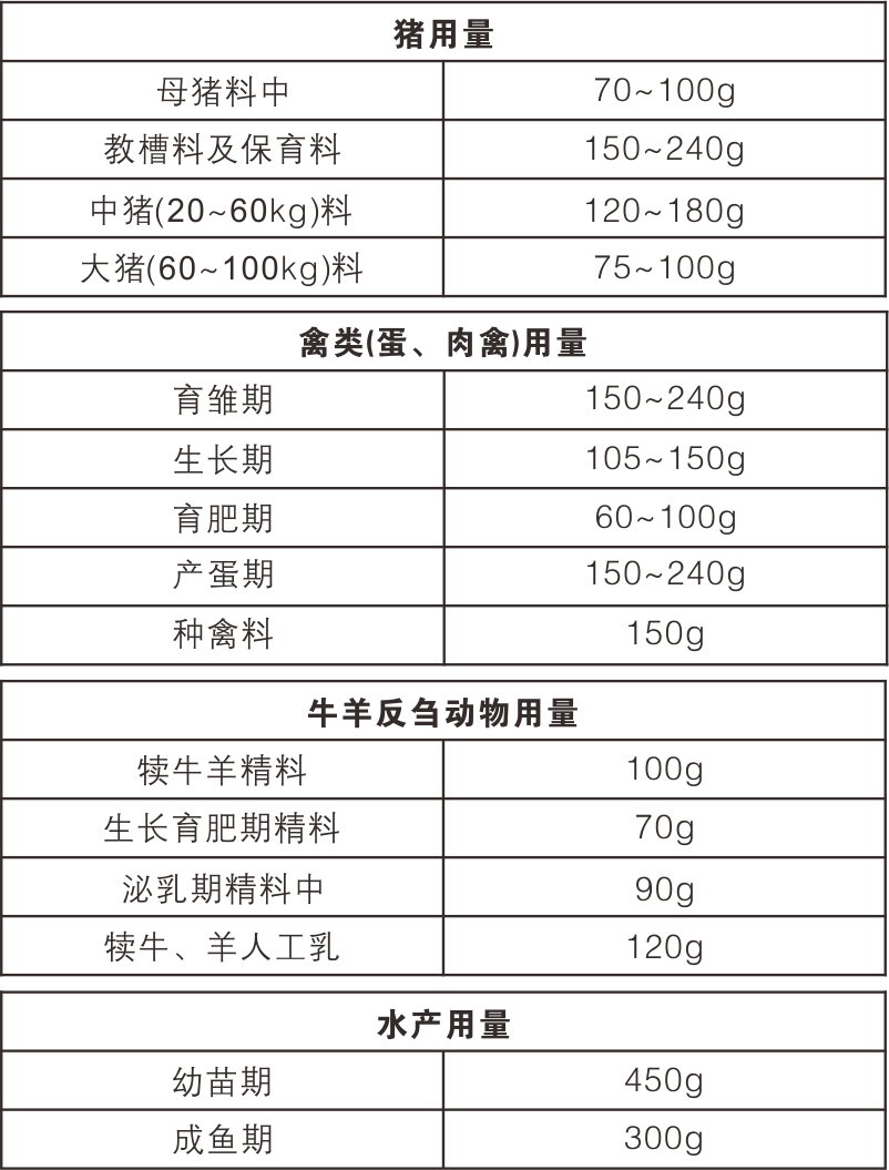 【用法用量】飼料/噸。